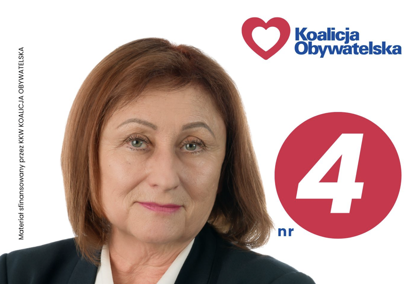 Wizerunek radnej Bożeny Laskowskiej na materiale wyborczym Koalicyjnego Komitetu Wyborczego Koalicja Obywatelska